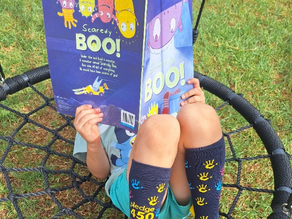 To support Tom’s reading journey and to raise funds for the Childhood Cancer Association, we are taking on the Pledge 450 challenge by reading 450 pages from a range of books. We are asking our family, friends, and community to please donate and sponsor our pledge. Every page read represents hope, resilience, and support for children and families impacted by childhood cancer.